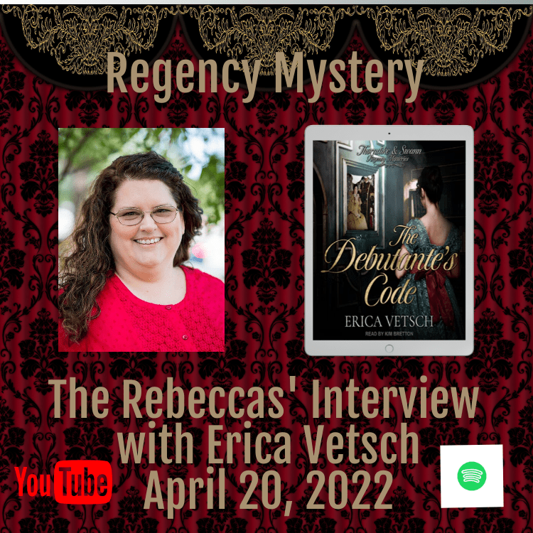 Our interview with Erica Vetsch, author of The Debutante’s Code is now up on You Tube. Join us for a fun and lively discussion, and hints about the next book in the Thorndike and Swann mysteries.